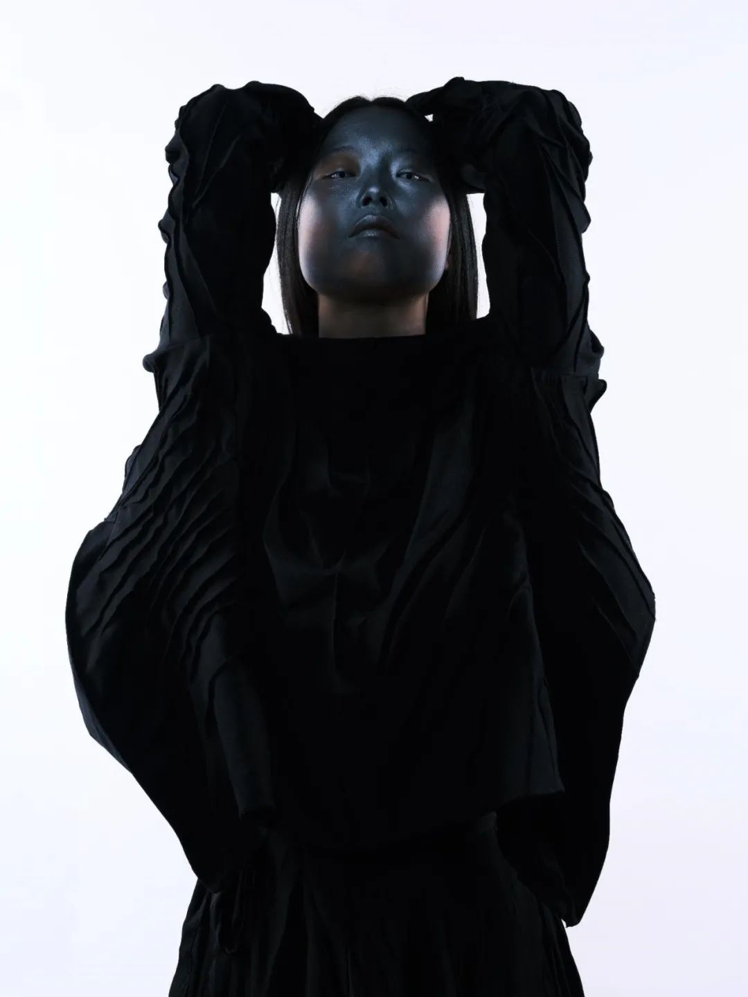 “银面”是一个集时装,实验性音乐、即兴编舞于一体的实验性表演系列,一共有三个部分,表达一种在熟悉与陌生、亲密与疏远之间的游离关系。这组作品源于我对于阴阳理论的兴趣,作为中国古老的哲学理论,其对立统一和互化的关系推动着万事万物的发展,充满了自然的神秘感又具有逻辑性。在英国疫情期间的隔离也让我开始思索我和自己的关系,我和外界的关系,开始了追溯本源和寻根的过程。