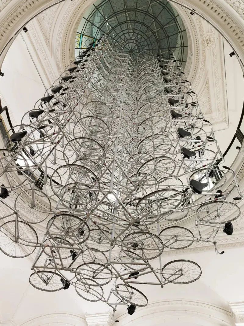 艾未未以抽象和象征性的方式重新诠释了这些日常发现的物品。自行车的数量之多,观赏角度的不同感知,创造了一个巨大的,迷宫般的、视觉上流动的空间,代表着中国乃至全球不断变化的社会环境。