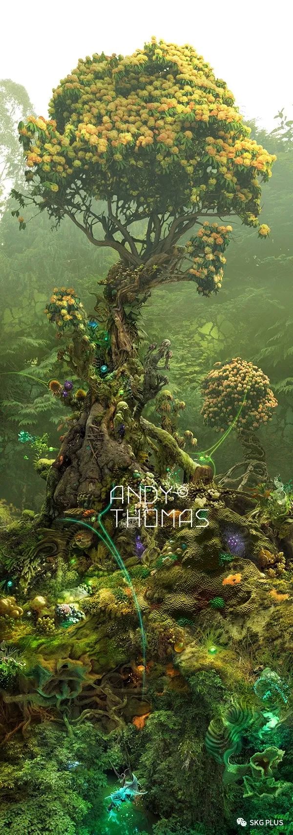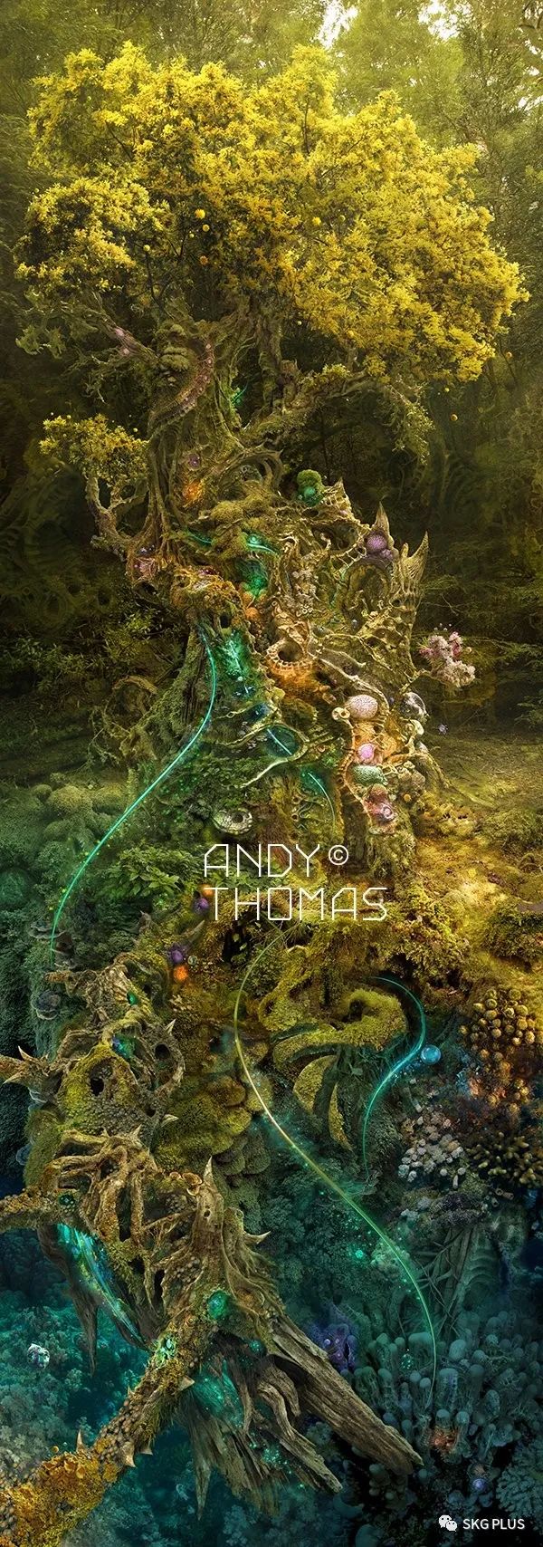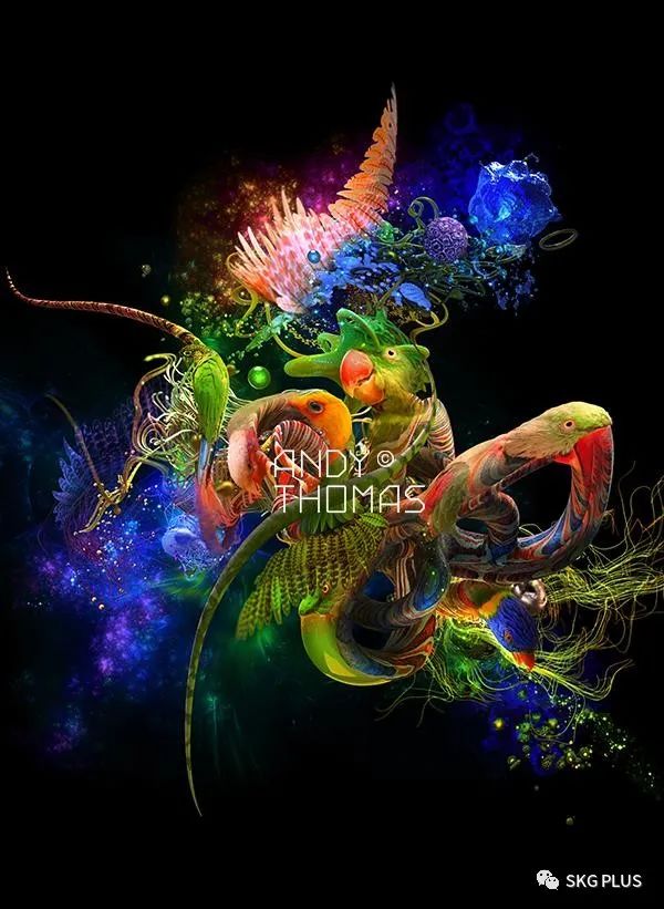 在过去的二十年里,Andy Thomas 带动了一种独特标志性视觉设计语言的发展。Andy Thomas 的艺术作品结合了数字艺术(Digital Technology)和水彩绘画(Water Colours),象征性地代表了自然和技术与艺术的碰撞。