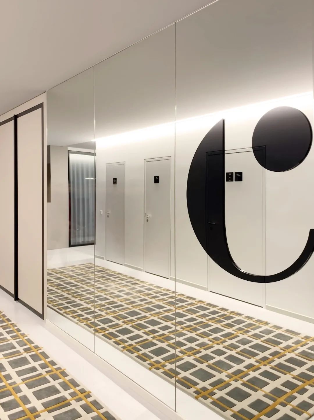 此外,由于建筑物的布局和位置,需要弥补日光不足的问题。我们通过在功能核心周围嵌入无框光线来实现这一点。有了这个,框架空间和引导视图到接待处。在这个区域,由于天花板和一些墙壁上拉伸的声学织物,我们还不得不应对一些具有挑战性的安装细节。木制子结构的建造是为了整合和悬挂来自这个织物天花板的照明。因为这些细节构成了设计。