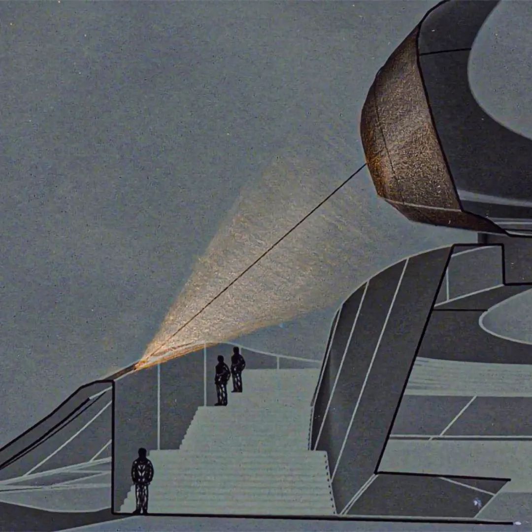 室内空间的亮度又成为建筑外部形象的基础,来影响外立面的实体部分的照明。光在夜间对建筑形体特征由内而外的强化表达,完成了对未来的象征意义的塑造。
