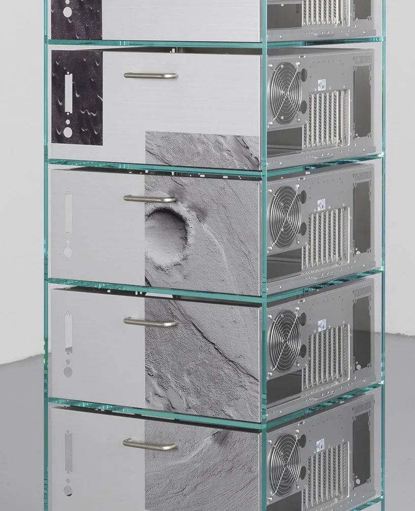意大利设计双人组合Formafantasma一贯将可持续发展视为核心理念,从生活、工业到电子废弃物,垃圾与废品被其当作实验性材料一一应用于创作。在“地上采矿”系列产品中,他们将旧电脑、手机甚至微波炉等无用的电子旧物拆解、重组,打造出充满简明工业质感的办公家具,微波炉的通风格栅、手机铸件和构成小隔间的电脑键盘等人们司空见惯的日常元素在其中变得陌生而新鲜。