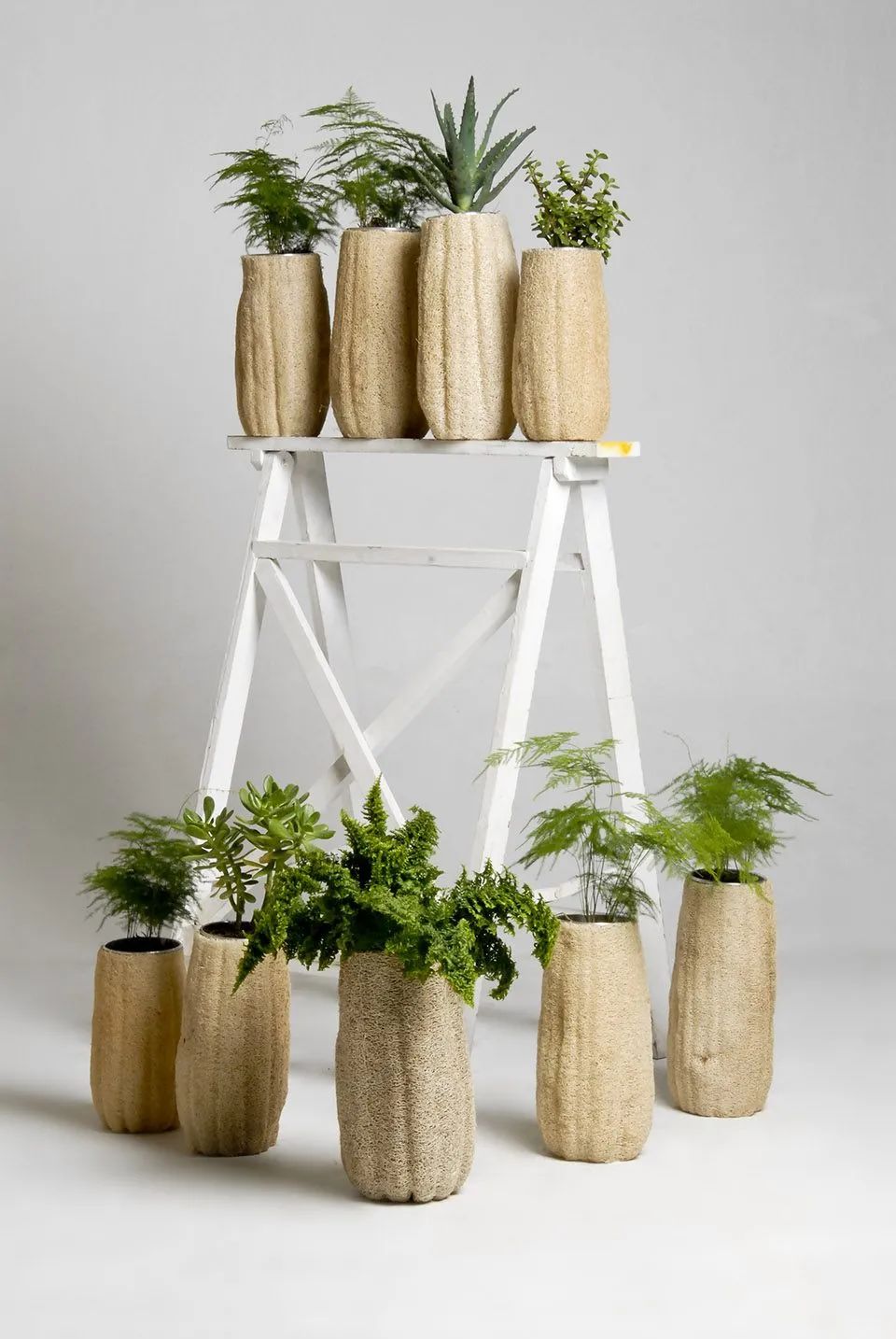 墨西哥设计师Fernando Laposse则以“丝瓜络”系列用品令人会心一笑——没人能想到这样一件朴实无华、平日被挂在厨房静待发霉的刷碗工具也有改头换面、成为家具与灯具等精美工艺品的一天。他用玉米壳与剑麻纤维等稍显简陋的天然材料取代难以再生的不可持续材料,以避免资源浪费。