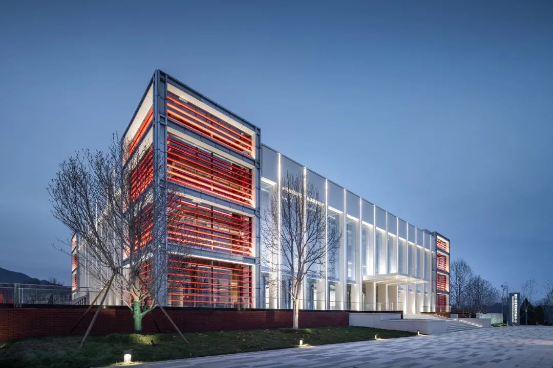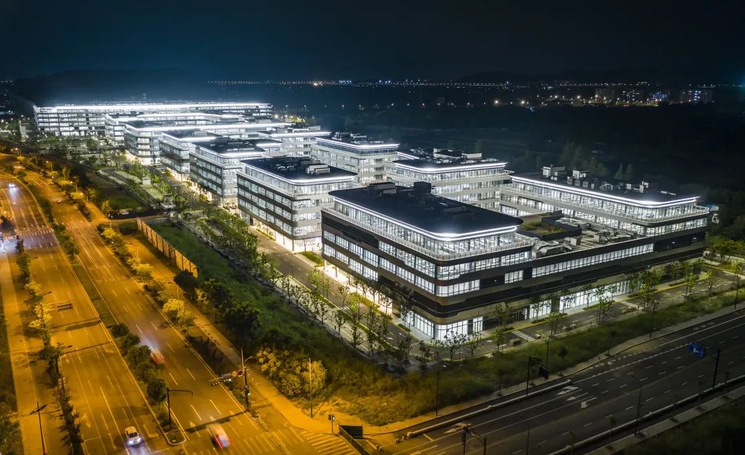 如果说白天的阿里云云谷园区像是大学校园般,沉静内敛;亮灯后的云谷园区熠熠生辉,和周边形成了强烈的对比,规整的布局加上纯净的白光,像是镶嵌在杭州西湖区云谷小镇中央的一块芯片。