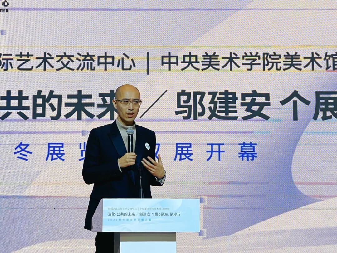 新绎控股总裁李晓菲在致辞中表示,“演化-公共的未来”、“邬建安 个展:是海,是沙丘”的开幕,是今年丝路中心公共艺术服务的重要事件。丝路中心的发展离不开艺术界、媒体界朋友们的支持和帮助。她希望未来能在大家的支持下,更好地发挥丝路中心国际文化交流平台的作用,为推动文化互鉴、文明互赏做出贡献,更好地服务广大艺术爱好者和人民群众。有了艺术家和艺术工作者们的共同努力,艺术的春天一定会到来。