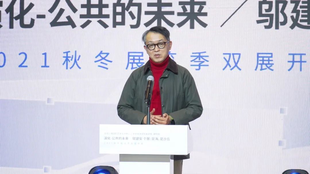 开幕式后,张子康、邬建安分别为来宾导览了“演化-公共的未来”和“邬建安 个展:是海,是沙丘” 。据悉,这展览将持续至2022年2月13日。以下是展览讯息。