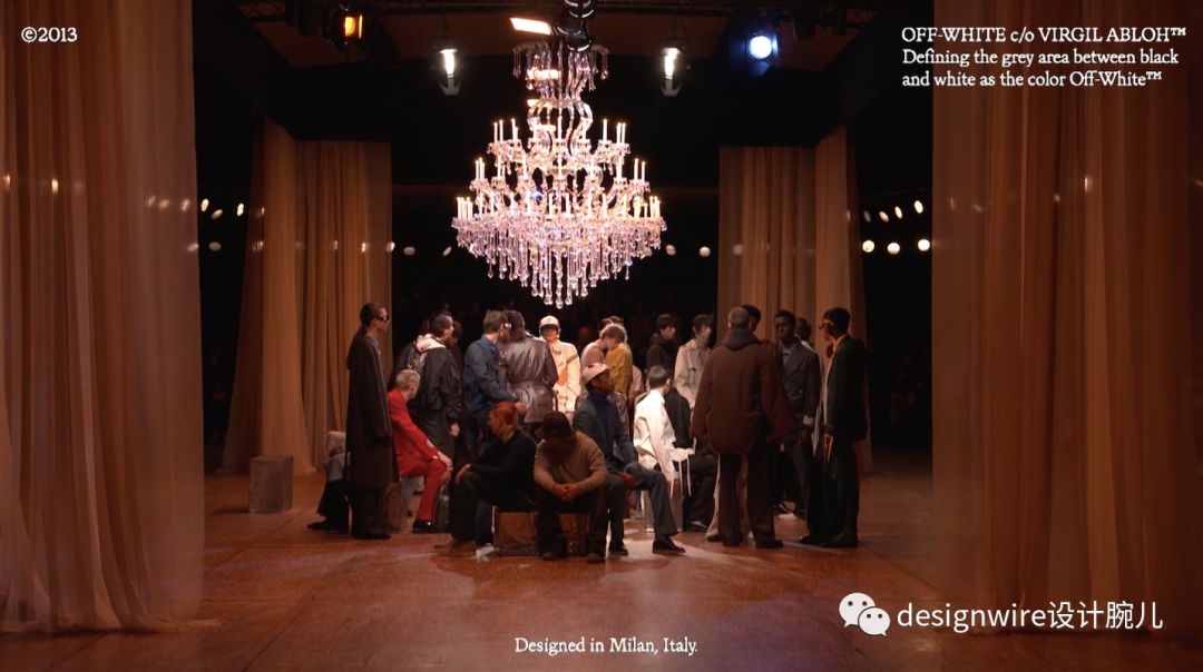 在Off-White秀场的观众,也许并没有意识到,鲜艳的绿色背景和舞台场景叠加,形成了电视直播背景。秀场被称为 “公共电视台”,要像对看着电视长大的一代传达广告和图片成为我们的生活环境,并塑造我们对世界的看法。