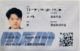 高处作业人员应受过专业的培训,必须持有应急管理局颁发的登高作业证
