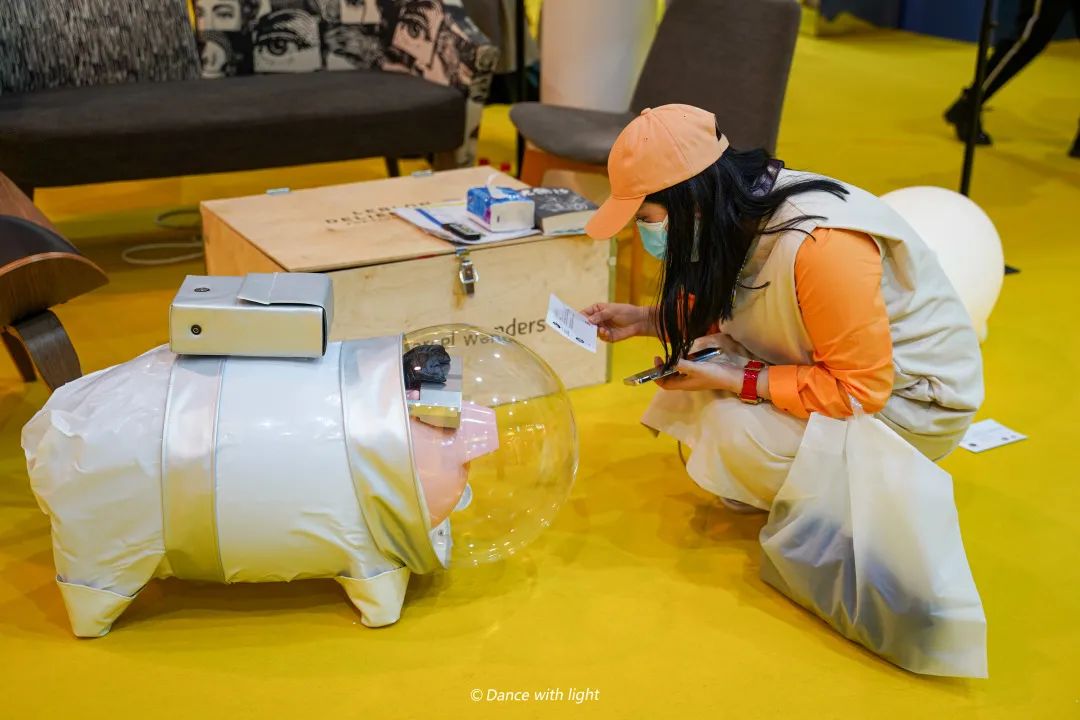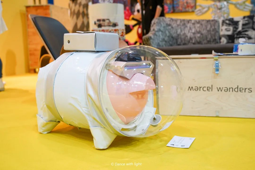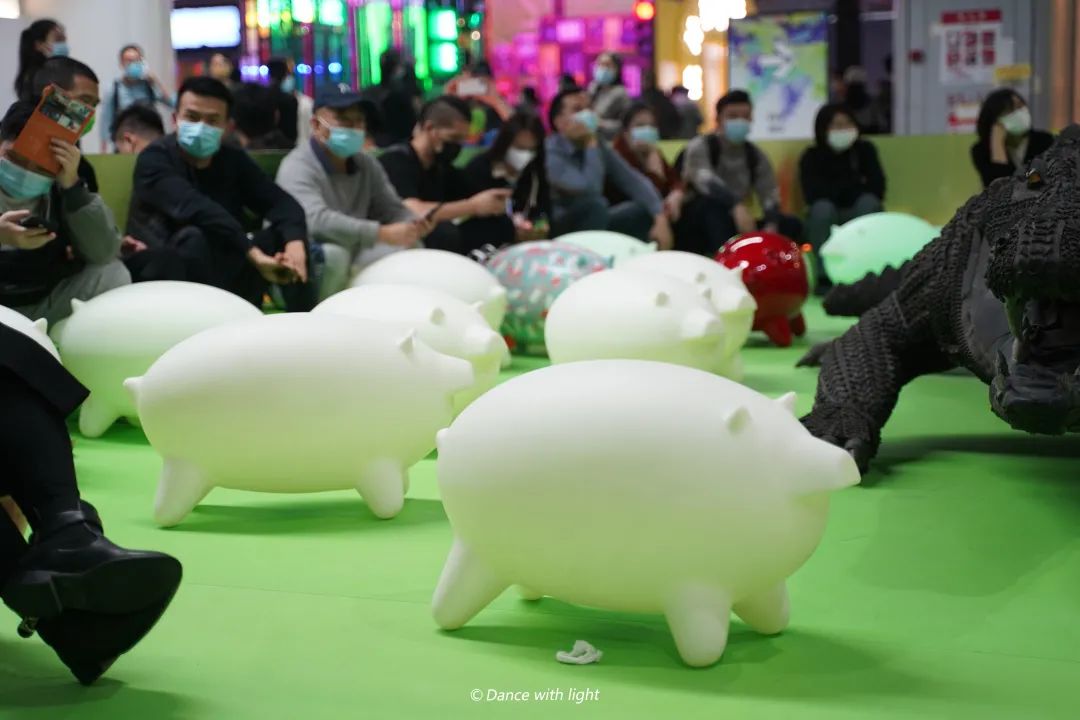 这只来自意大利的猪,跟随BGM出场,不仅在展览中秀了一波音乐素养,还跟随人们一起玩乐。