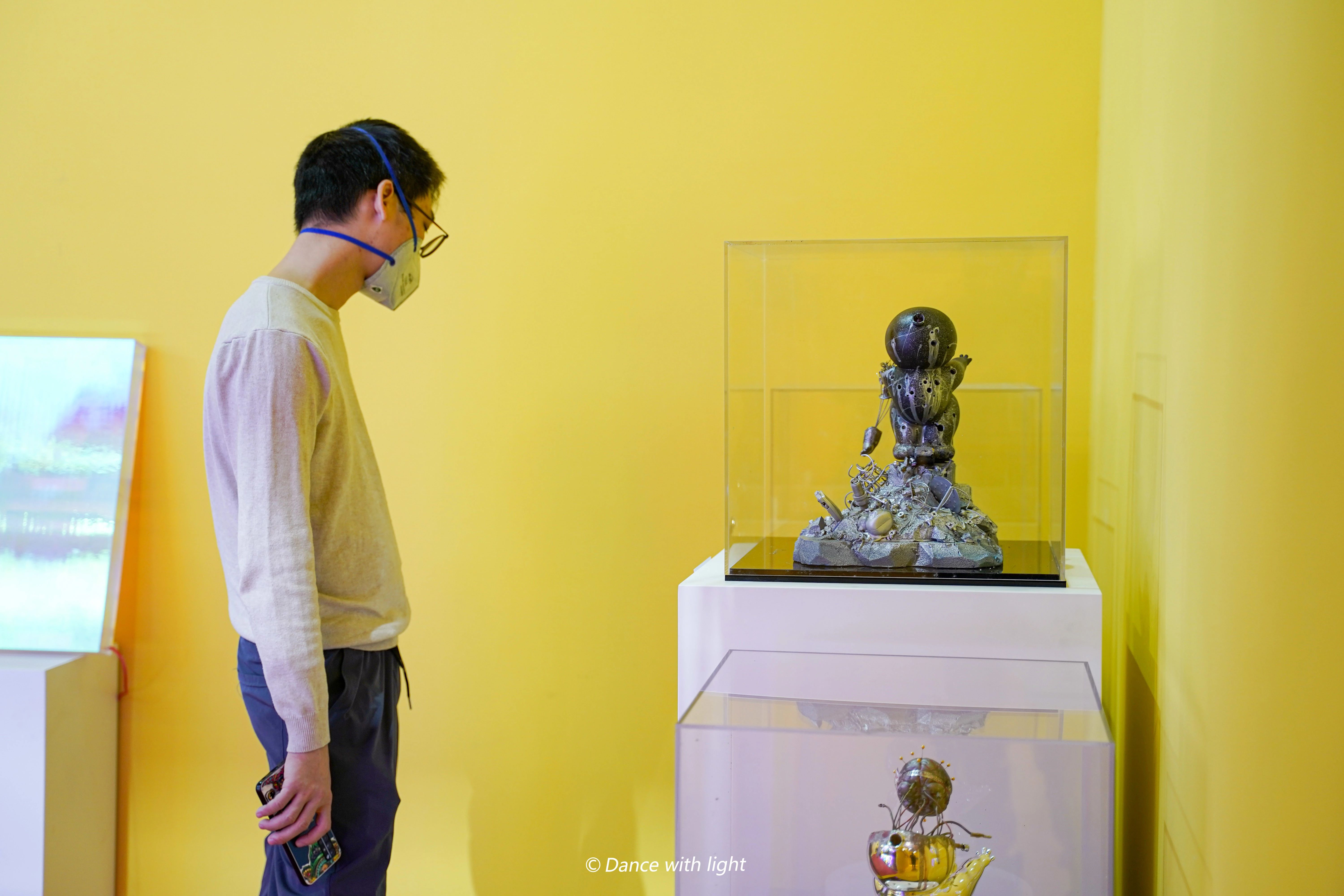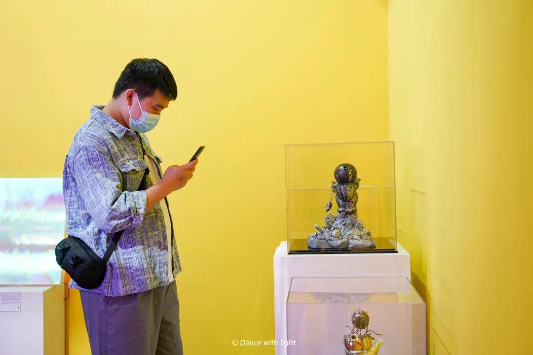 "光头仔"系列花植艺术,艺术家梁贺以"情书"为主题,将笔下的光头仔与植物首次结合,在现场也收获了一波关注。