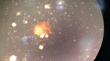 研究人员发现,如果将足够多的Xenobots放置在培养皿中彼此靠近,它们会聚集并将其他漂浮在溶液中的单个干细胞堆叠起来,用它们如同吃豆人形状的“嘴”将干细胞组装成“婴儿”Xenobots。