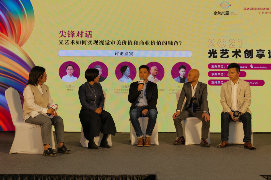 嘉宾的精彩分享后,迎来了尖锋对话环节。围绕“光艺术如何实现视觉审美价值和商业价值的融合”这一话题进行了热烈的探讨与互动,分享自己的独特见解。至此,“2021光艺术创享论坛”圆满落幕,我们期待下一次美好的相遇!