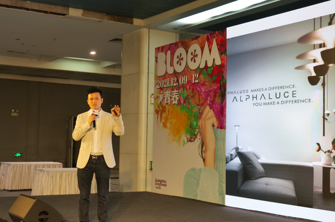 ALPHALUCE 亚太区总裁何东旭为大家带来《光影艺术在空间的商业应用》的主题分享。他首先通过宣传短片向大家呈现了ALPHALUCE顶级商业照明品牌形象,ALPHALUCE 创立于意大利佛罗伦萨,致力于为全球的高端酒店、高端住宅、商业办公和商业综合体等商业空间,提供一站式集成照明解决方案。如今产品行销至全球100多个国家,并于2018年正式进入中国市场,凭借独特的灯光设计理念,创作出诸多商业标杆项目。