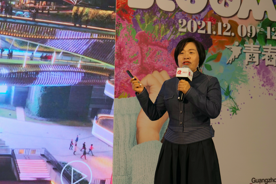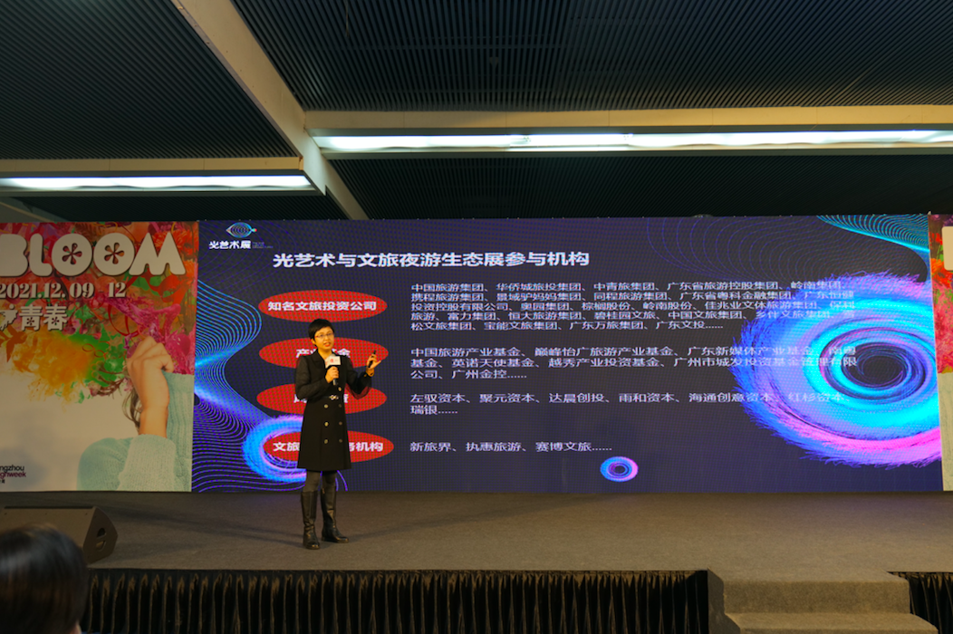 接着她回顾了第一届光艺术展的整体情况,24位行业知名设计师与21家行业知名牌强强联合共同创造了29个光艺术作品,为广大行业观众打造一场美轮美奂的“科技与艺术融合”的视觉盛宴。并介绍2022年第二届光艺术展将设置3个艺术空间,其中包括追光少年——广州美术学院建筑艺术设计学院工作室毕业设计展、光艺术作品展区和文旅品牌创意展区。结合展览会同期举办的文旅生态示范馆全面现场展示,并现场举行盛大的颁奖活动,以创新设计项目引领文旅生态产业的未来。她希望更多的设计师和更多的企业能参与进来,期待第二届光艺术展以更大的空间面积,更丰富的展览形式、更完善的产业链条、更前瞻的高端论坛来为光亚展赋能,为行业赋能!