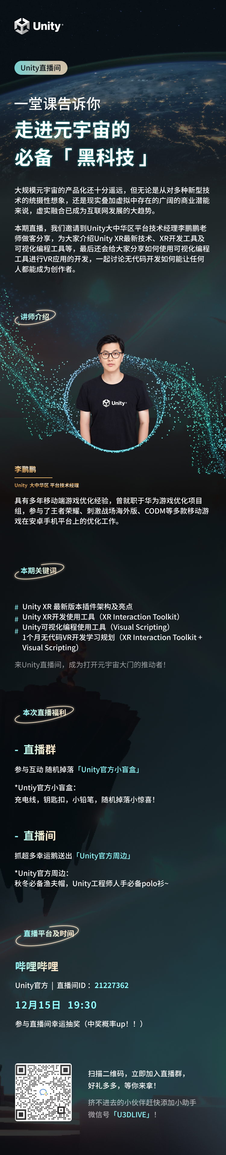 本文内容由数艺网收录采集自微信公众号Unity官方平台 ,并经数艺网进行了排版优化。转载此文章请在文章开头和结尾标注“作者”、“来源:数艺网” 并附上本页链接: 如您不希望被数艺网所收录,感觉到侵犯到了您的权益,请及时告知数艺网,我们表示诚挚的歉意,并及时处理或删除。