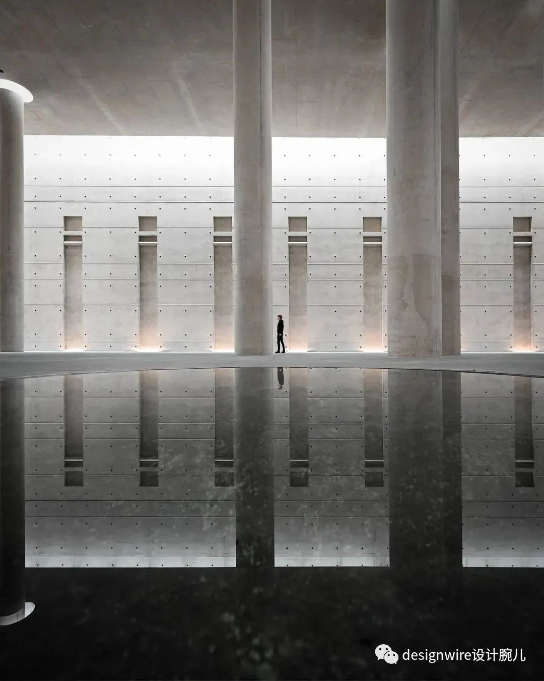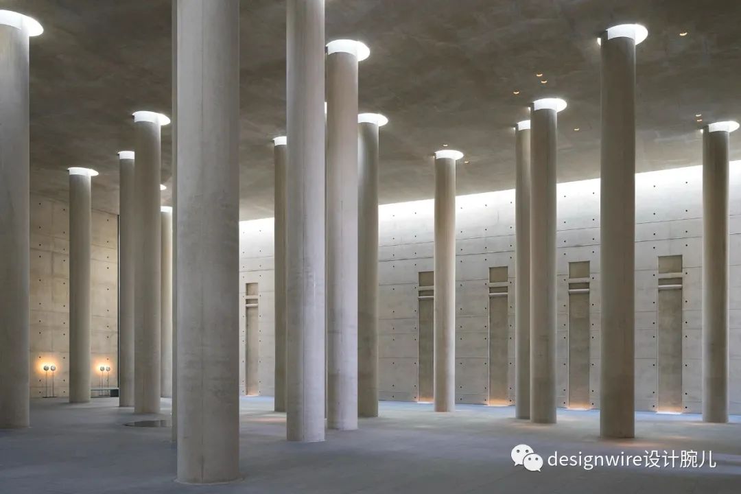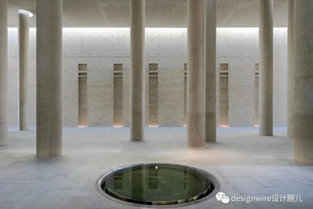 11米的挑高高度中,雕塑般的烟囱打破了平面的对称结构,前后通透的悼念空间阐释了这座建筑的精髓,赞美着诗意光线下安息的灵魂。