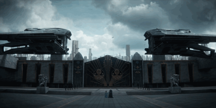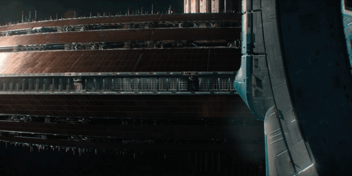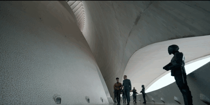 就像整部小说将罗马史诗般的故事搬上了银河系舞台,没有过多着墨于个体角色,影视制作团队投入了大量精力塑造宇宙中不同星系,以及穿梭在其中的飞行器。