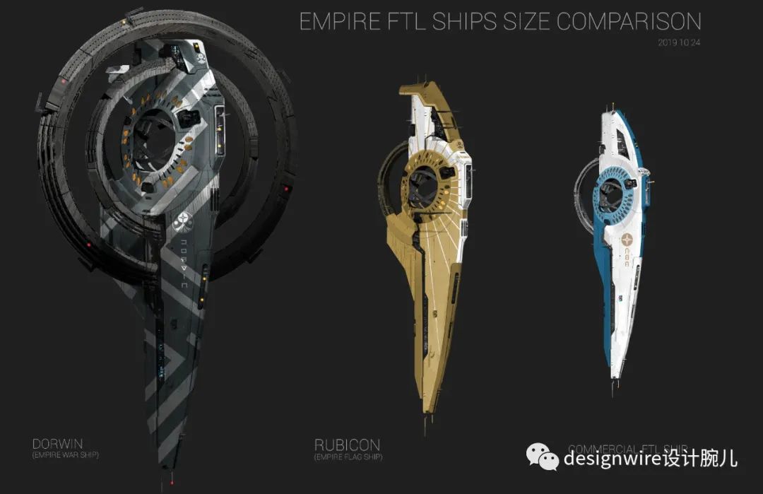 负责影视剧概念设计艺术家 Stephan Martinière 认为设计应展示叙事的意图,就比如 Anacreon 飞船的前端就像两个木雕盾牌,融入了历史部落的概念,以更加符合星球战争不断的社会背景。