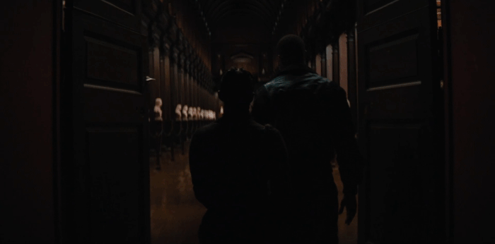 这次取景自都柏林圣三一学院旧图书馆,是一座有着300多年历史的国家级遗产建筑,拥有650万册图书,以其世界级研究藏品而闻名于世,被评为是世界上最美丽的图书馆之一。