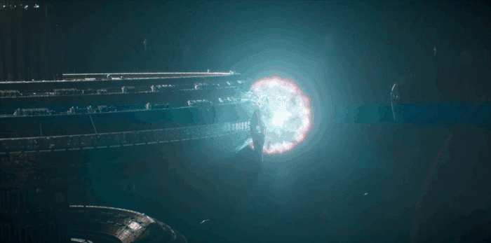 在第七集中现身的 Invictus 战舰设计致敬了1997年科幻影片《Contact》中的神秘传送机器结构,当几个同心圆交叠时产生虫洞,实现在空间跳跃(一种超光速的飞行方式)。