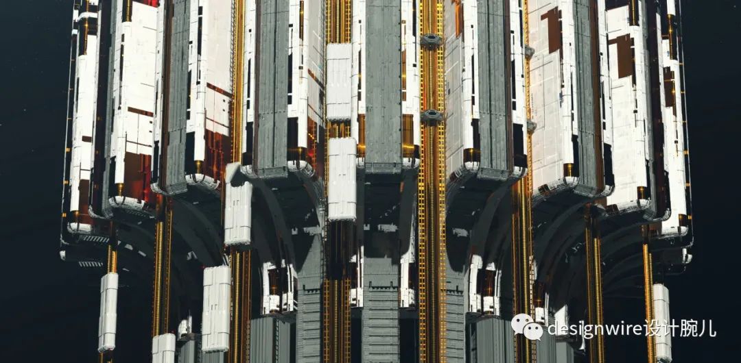 巨大的几何形体块和密集尺度,让城市如包附一层金属外皮,人们都生活在灰蒙蒙的外皮之下、硕大无比的建筑物。星罗棋布的金属建筑物与天际接壤,并深入地底超过一英里,利用深层与地表的温差,供应所需的能源。