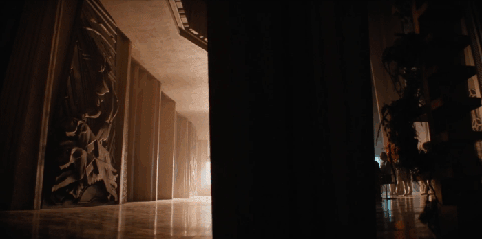 剧组从建筑师Carlo Scarpa的作品汲取灵感,不同于传统的粗犷主义建筑,运用诸多古罗马玻璃和拜占庭镶嵌画的传统装饰,让窗户开孔埋藏于钢筋水泥表面之下的形式,焕发出新纹理和多层次且实用的外观表面。
