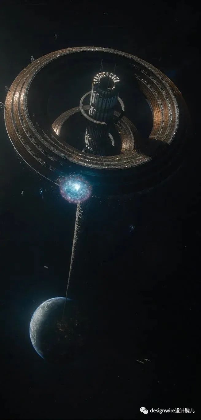 一个连接着地面、超4万公里的太空电梯“星桥”利用反重力推动,高耸入云。庞大的规模消失在视线之外、伫立于太空中,平衡着川陀星球的引力。