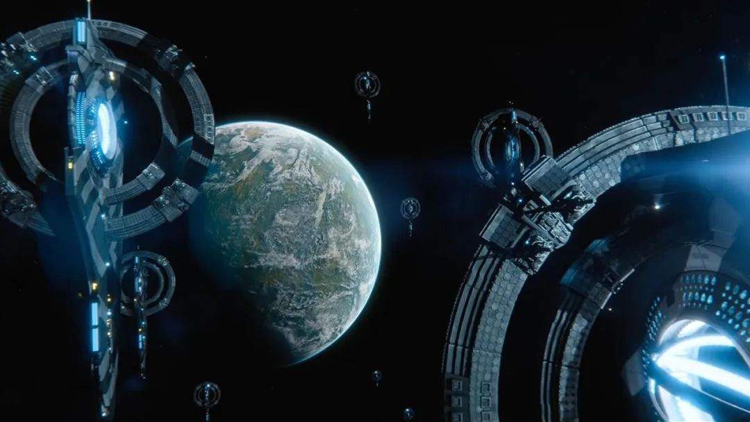剧中,人类已经精通了星际跃迁,主人公年轻数学家盖尔·多尼克从遥远的辛纳克斯来到川陀,通过飞行器进入川陀星球同步轨道之上宏伟的入境大厦。