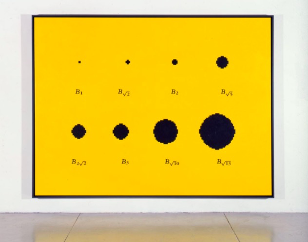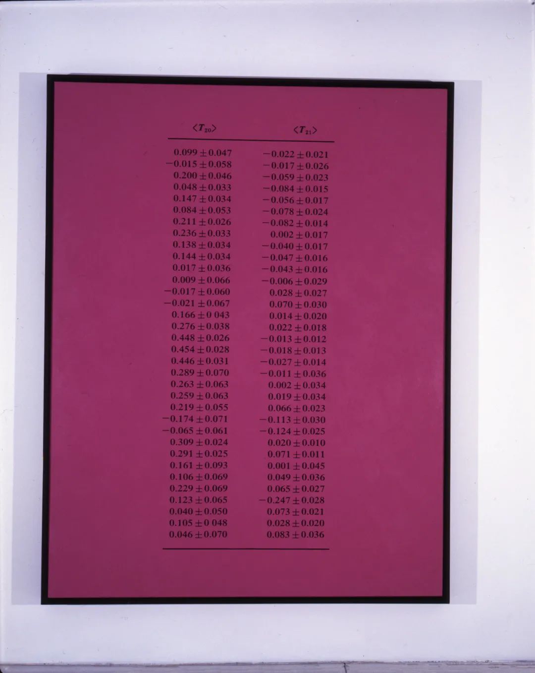 《190°和136°两个角的位置》,贝纳·维内,1977Q:从古希腊到文艺复兴时期,西方哲学和艺术的发展一直和数学紧密结合,到了推崇个人自由表达的现代,艺术中的科学却不再被推崇,您的作品是想要再去复兴这种理性主义吗?A:在20世纪60年代,我开发了一套被称为 "概念"的作品,它使用了语言和数学的形象。现在,我回到了这一点,但有不同的野心。我选择使用数学符号的原因,与纯粹的艺术问题直接相关,因为这涉及到艺术作品的身份及其特殊性——它是艺术中的一种革新的语言,一个符号系统,包含那些尚未开发的形式和概念结构,而这些结构和形式,至今仍是被压制的。那些新奇和未知的维度,会让我朝向更多的可能性和潜能,而非我已经熟悉的事物,姑且可以称它们为表象和抽象。在数学的世界里,我发现的这种原始的语言,即符号和形式结构,是由一连串方程式去描述的。它是一种视觉的陈述,跟以往使用过的语言都非常不一样。通过采用这种拥有丰富潜能的语言,我目前正尝试去开发一套作品的表现方式,让他们去寻找自己的身份系统。就需要清晰地去理解这种冷酷的非表现性美学。如果想要深入细品这个美学系统,就必须去适应这种新的语言方式。它们在形式上并不亲近友善。我们都曾在学校教育里被训练过、被教育什么叫做美,导致我们重新进入一个全新的艺术空间时,很难再去欣赏制约之外的美学价值。