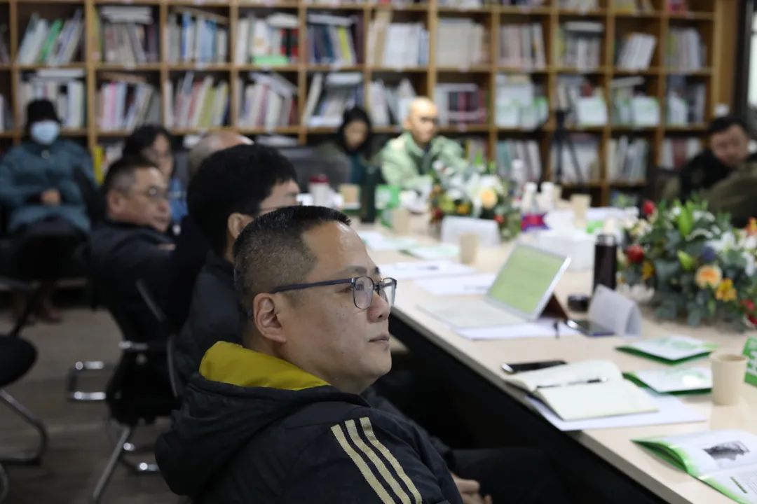 靳立鹏首先分享了他与教学相结合的生态艺术行动的三个支撑理论:系统思维、社会雕塑与联系式美学。随后,他对“愈园生态艺术行动”进行了介绍:通过将建筑垃圾与废弃材料就地转化为肥料,最大程度减少“碳足迹”并建立新的循环系统,“愈园”致力于将“人类世”的废弃空间转化为跨学科探讨的实验空间。以土壤为对象,对从学院收集而来的宣纸、木屑、落叶进行的堆肥,在实际与象征两个层面回馈了生态。最后,靳立鹏以生态美育项目为例,展示了生态艺术与地质学、植物学、书法、竹编、水彩的合作实践或关联可能,他将项目总结为链接不同领域,链接人与自然、人与社会的探索。