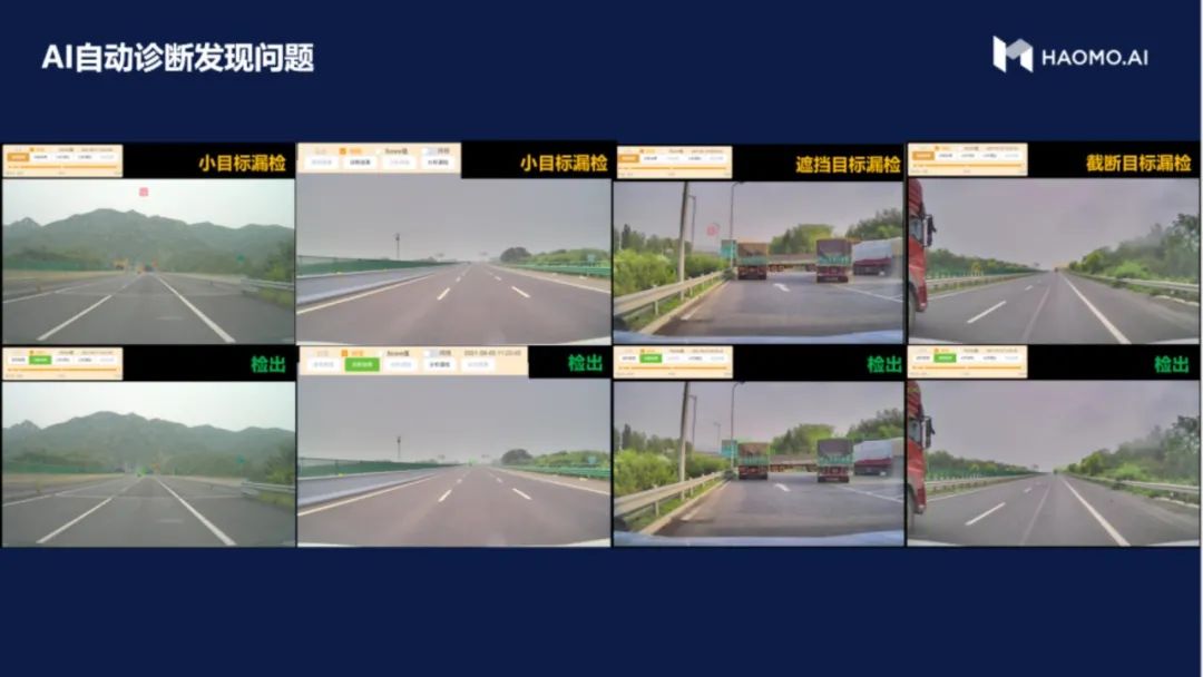 如果把这种模型放在实际的驾驶场景里面,简单地筛选一些实际遇到的情况,就会发现在应对一些小目标或异型车时候,“学生”一开始识别不出来,而用大模型其实可以识别。例如,最初做训练的时候,大家标注的样本都是有限视角的,但是当走到路口的时候会有很多车辆的遮挡和截断,通过大模型,我们可以实现不同天气、光线条件下的泛化。通过这种方式发现,提升“学生”的能力。