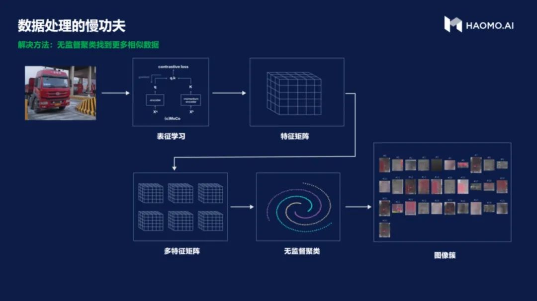 我们采用无监督学习的方式,首先是把图片转化成一些特征,后采用无监督聚类的方法在一个数据集里找到更多和这张图片特征相似的数据。把这些数据加入到整体的样本集里面调和,从而提高数据质量。后通过人工的抽查和复检,去除错误数据,以此来保证数据质量的纯粹性。