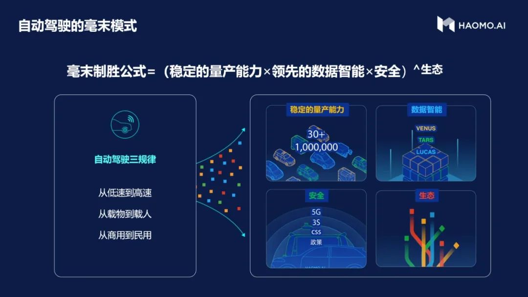 我们认为,量产之后,有了数据,通过实现数据的智能,保证产品的安全性。在这个基础上利用生态的能力,可以实现最终的成功。