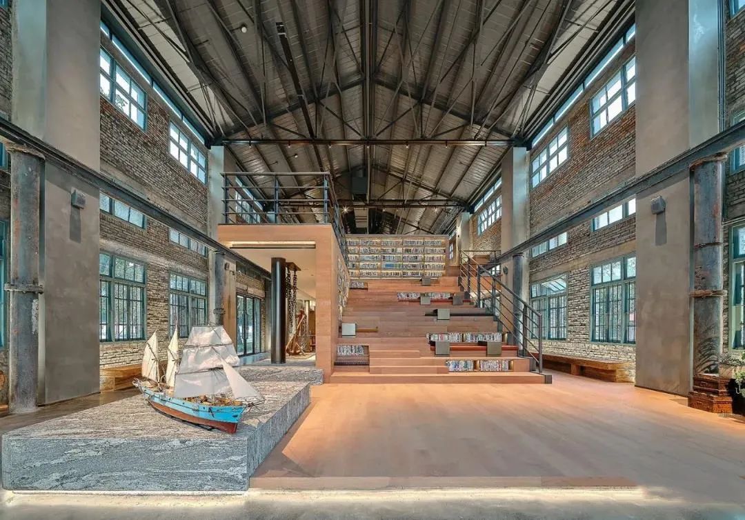 室内空间以“船”为元素,将整个书局想象为一艘在文化浪潮中航行的方舟。