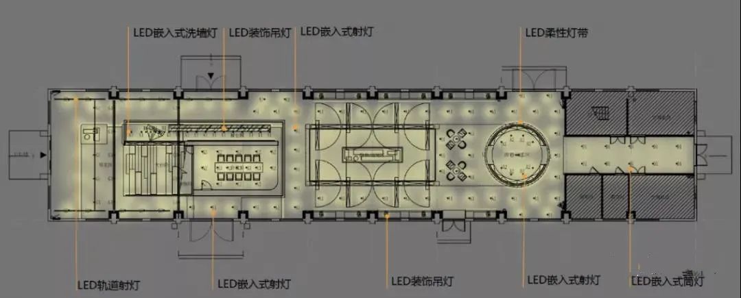 书架层板均内嵌两条型材灯带,中央展台需柜体公司配合设计,将光源藏于展台内部。