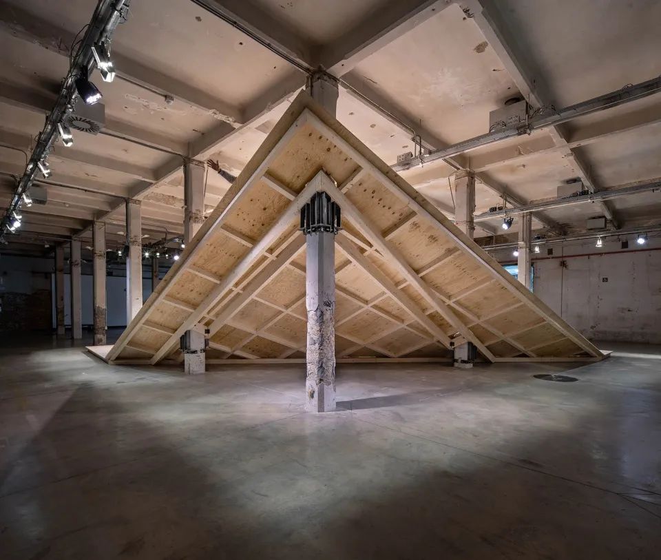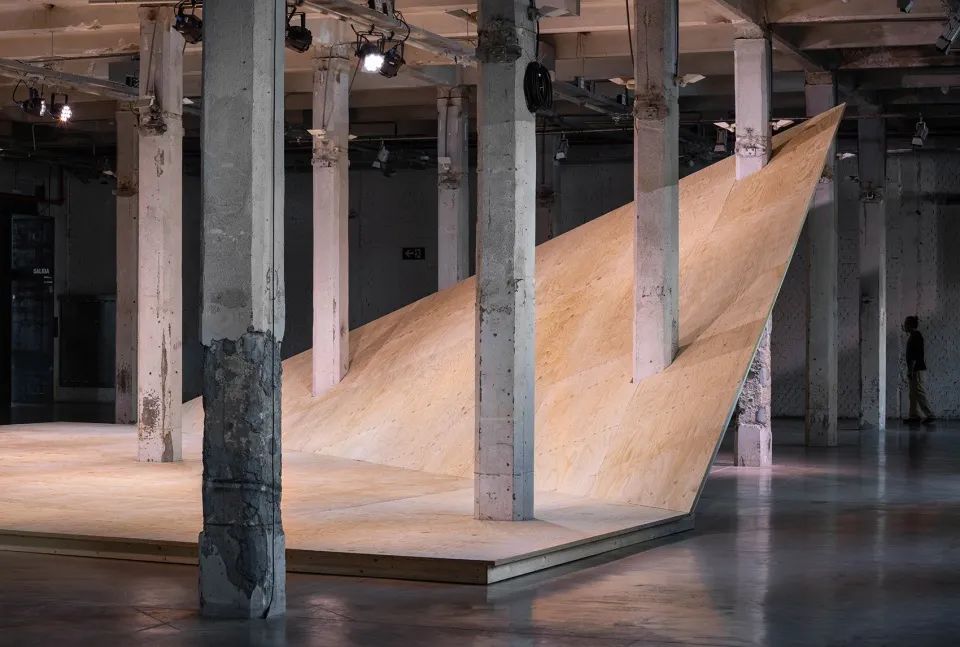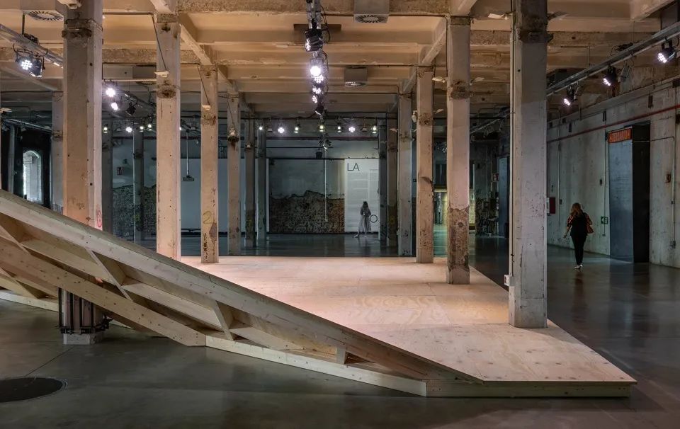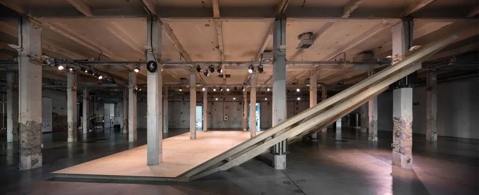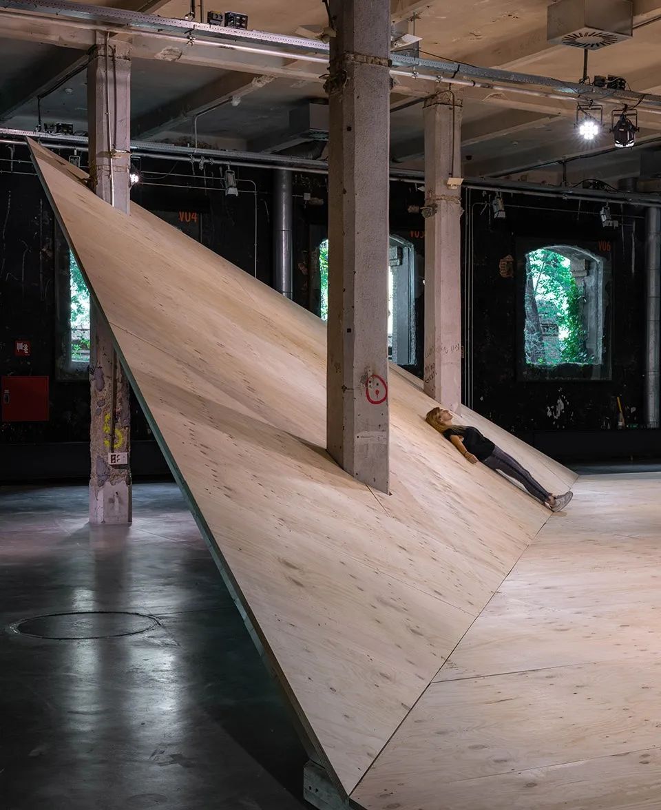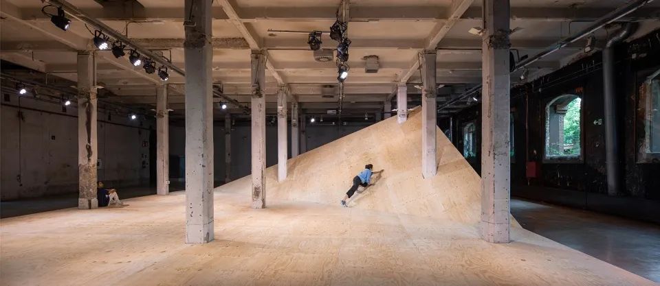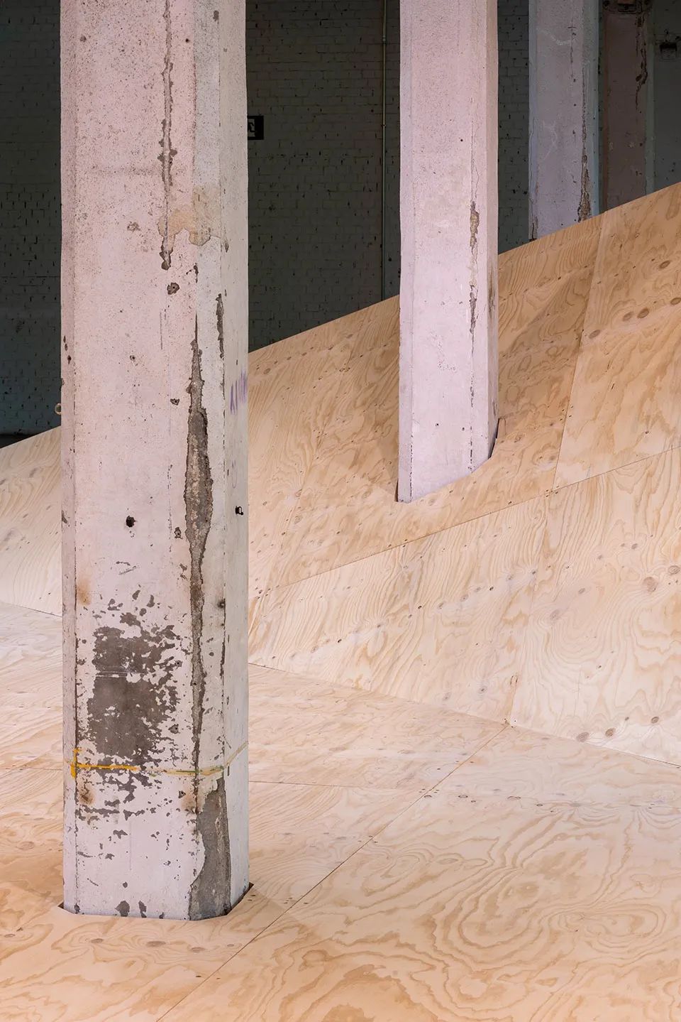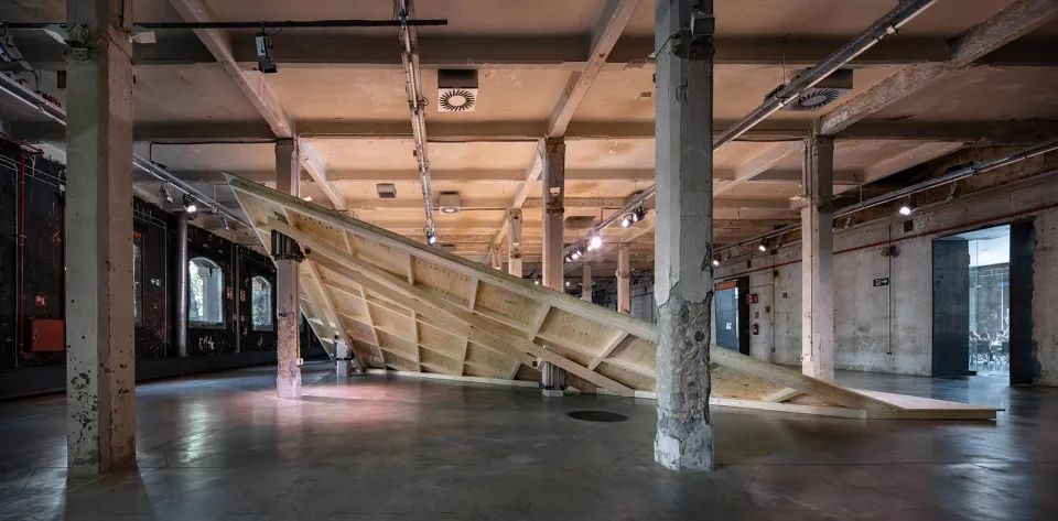 过去几年中,马德里的Nave 17已邀请不同艺术家和建筑师参与其中,与作为旧屠宰场的历史建筑展开了对话。近期,FAHR 021.3的作品La Hoja在此展出,将原为公共空间和街道打造的短期装置拓展至更大维度。