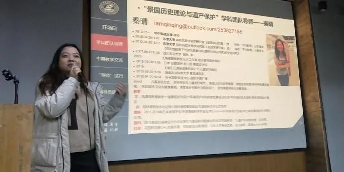 苏畅讲师介绍了本科到博士的教育经历,告诉同学们努力的方向很重要。苏老师研究方向为风景园林历史理论、文化景观、日本现代景观政策研究。
