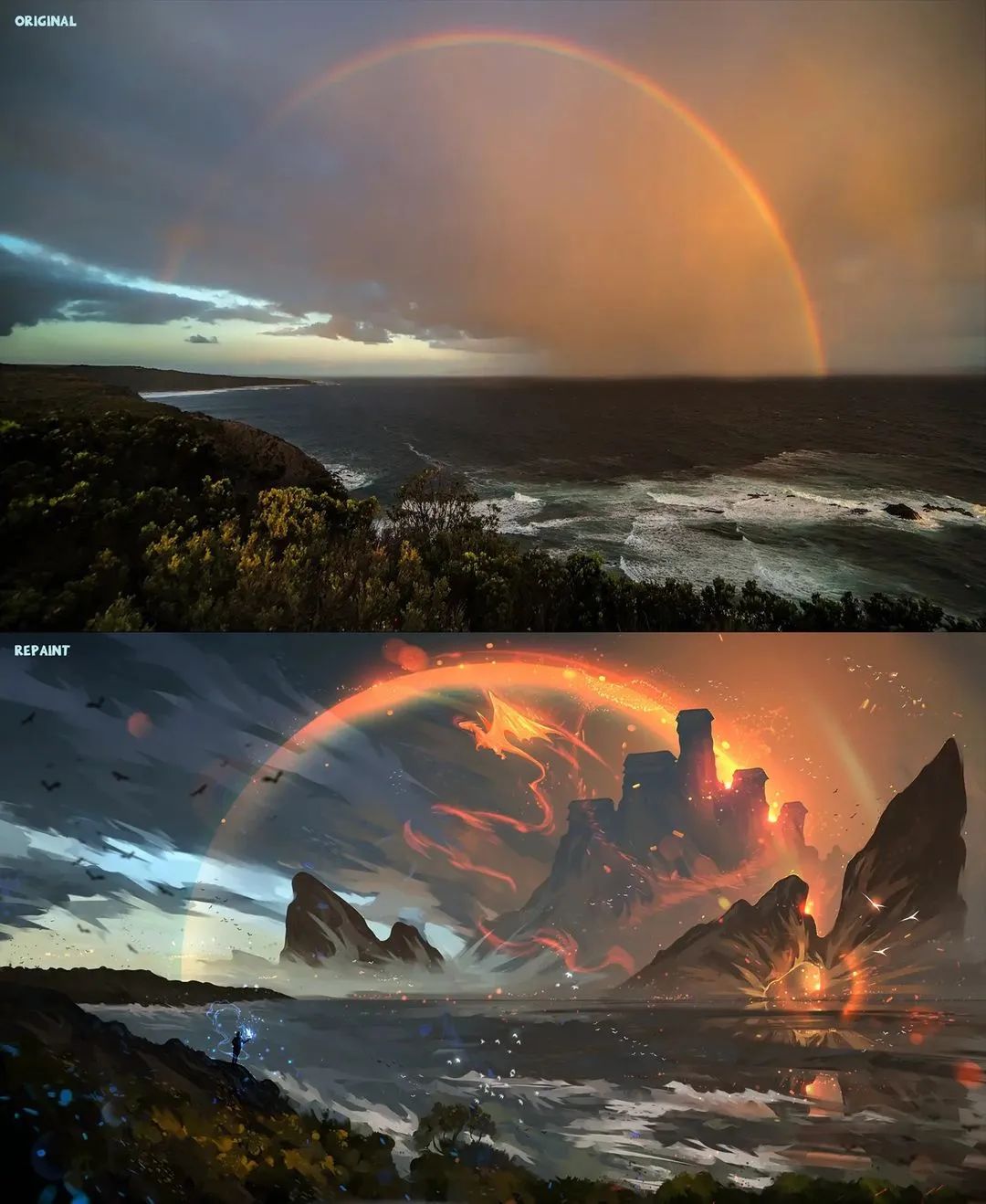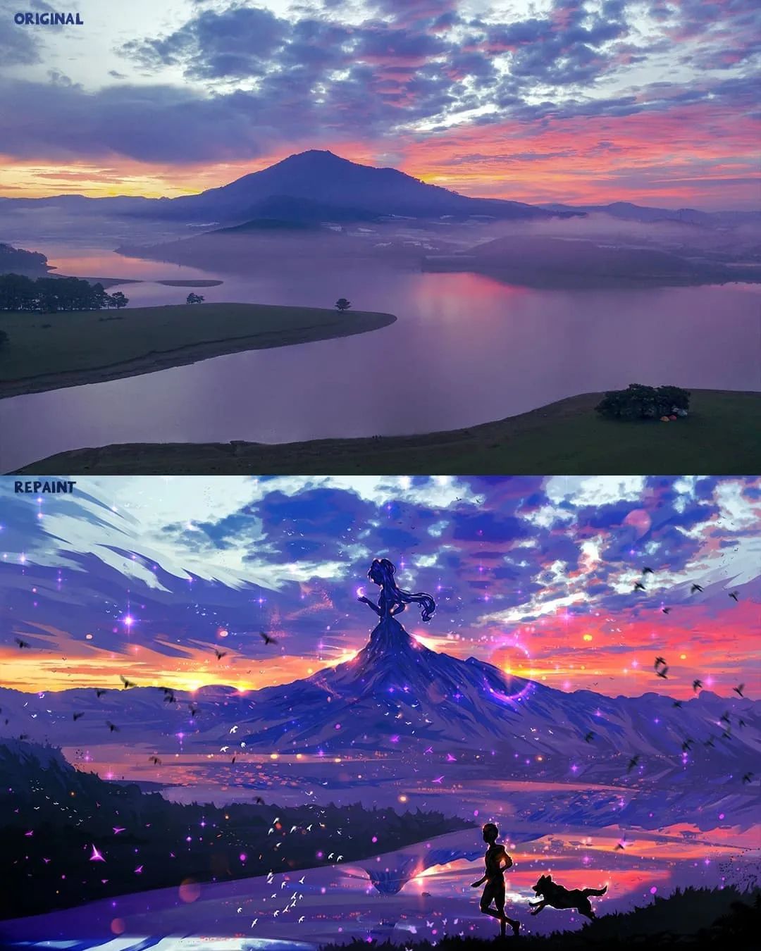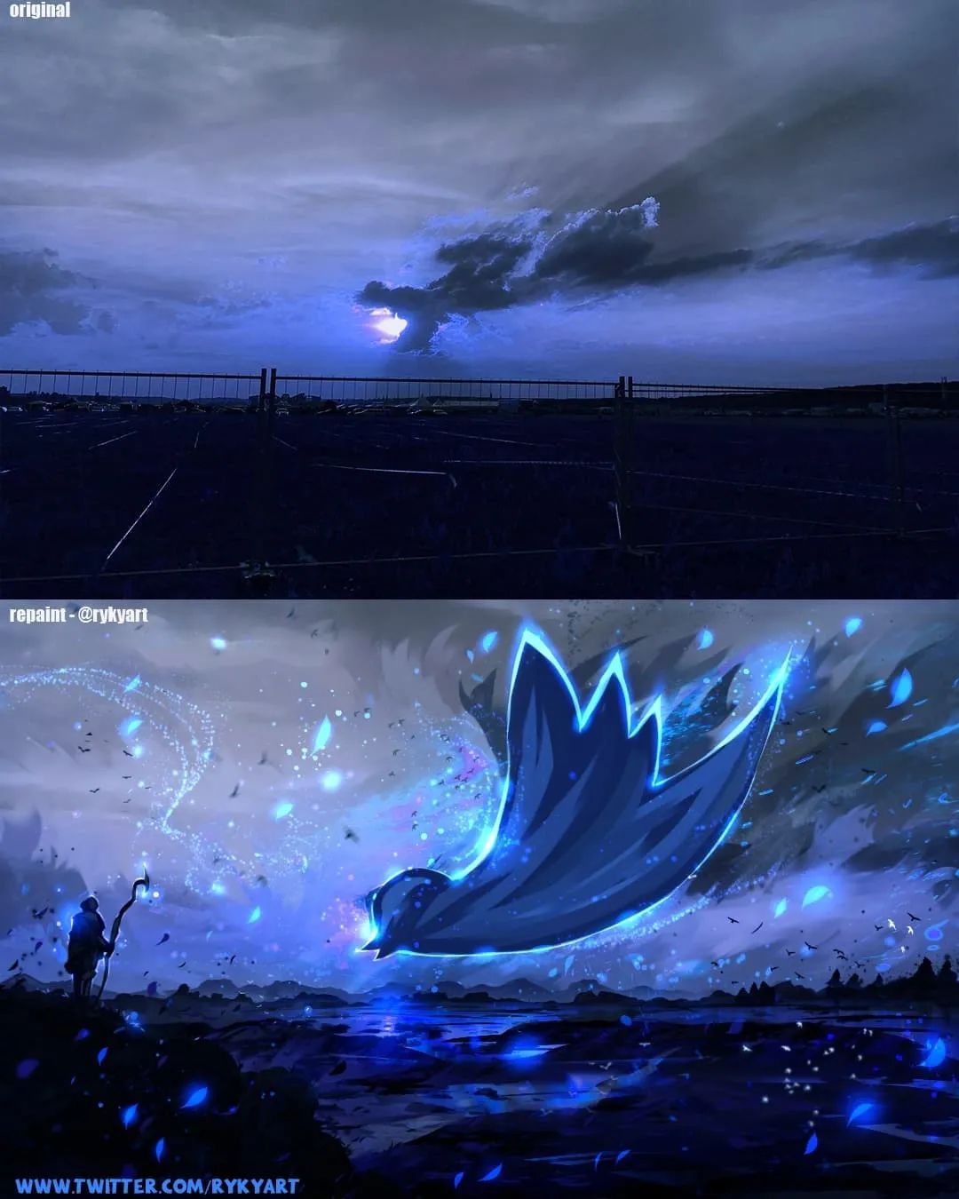 像这种样式的照片,就给插画师 Zdenek Cehelsky 提供了灵感,在照片的基础上,只需要加亿点他创意的描绘,就能变成一个宏达的二次元插画: