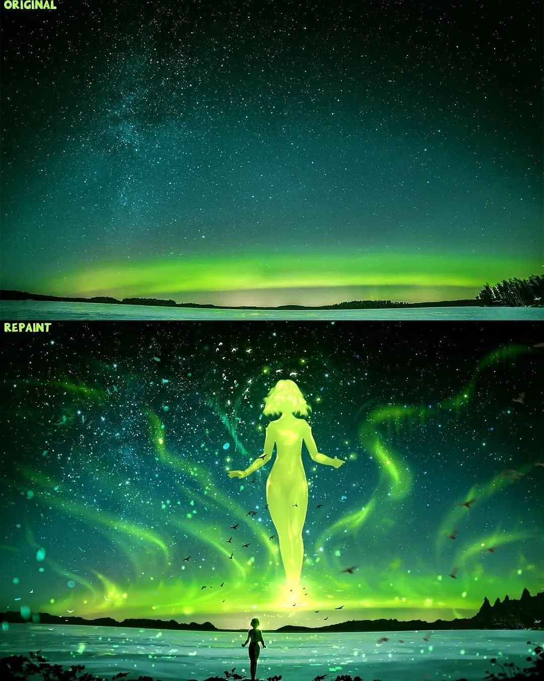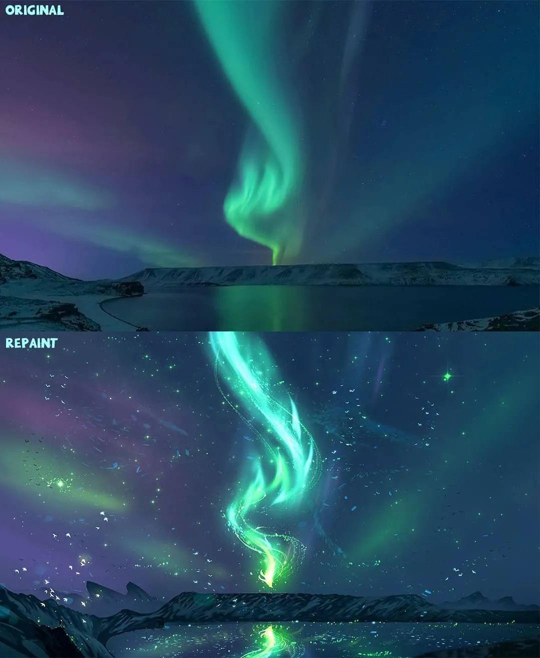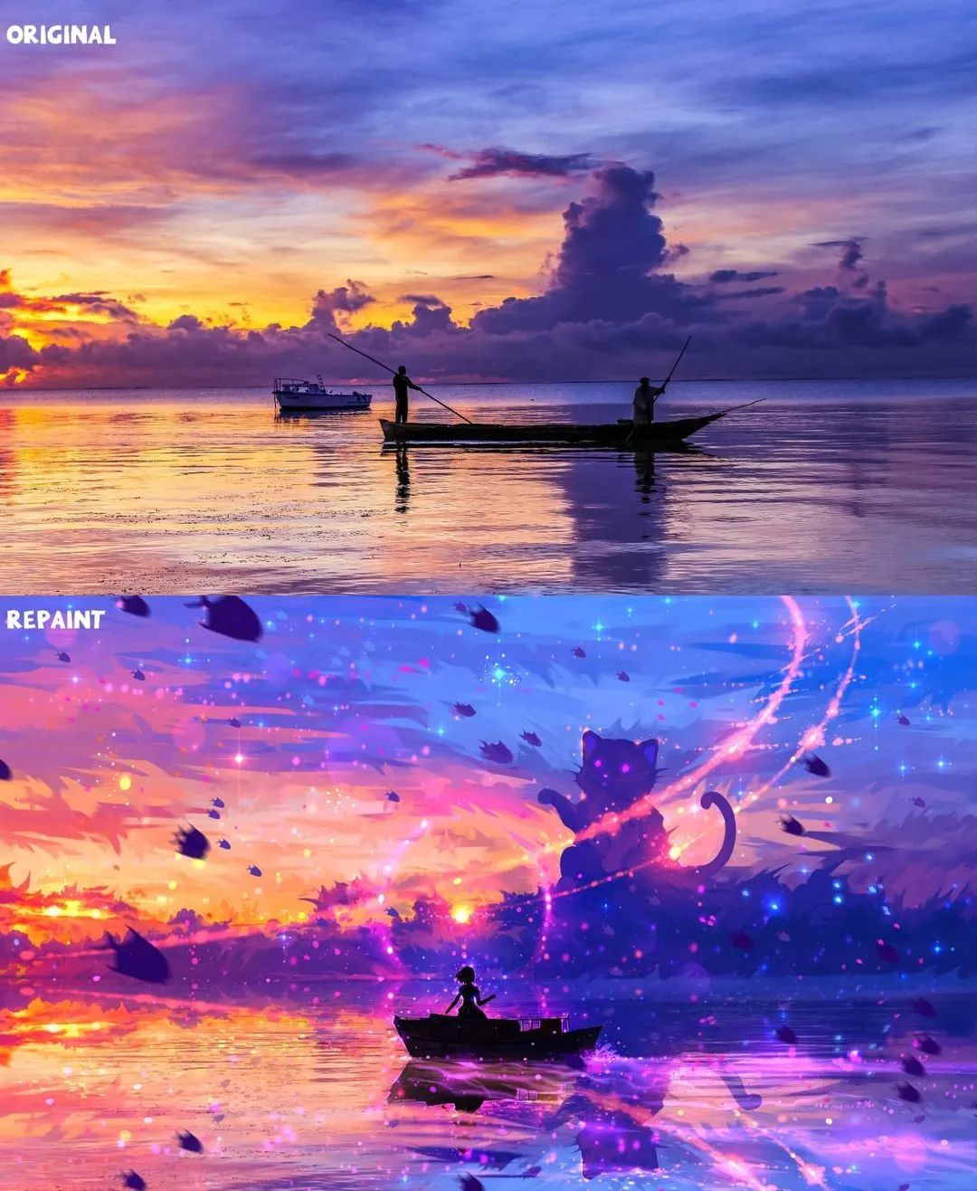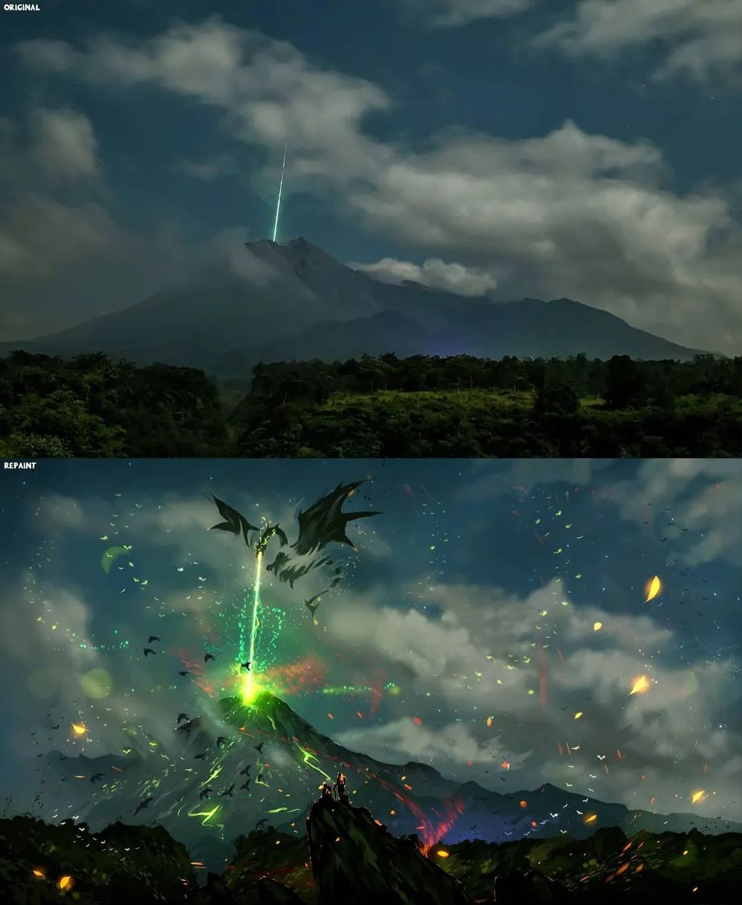 像这种样式的照片,就给插画师 Zdenek Cehelsky 提供了灵感,在照片的基础上,只需要加亿点他创意的描绘,就能变成一个宏达的二次元插画: