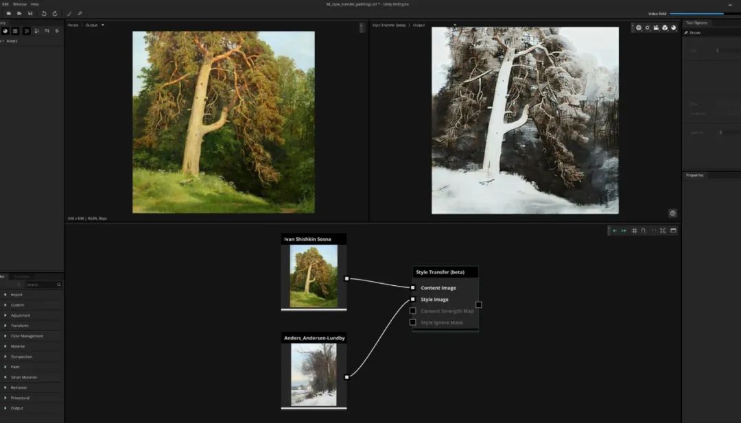 现今市面上有各种各样的创作工具和制作流程,但 Unity 认为创作者们都应该享受更高效、更有趣、更方便的创作过程。为此,AI 辅助艺术创作工具 ArtEngine 推出了全新的 Style Transfer(风格转换)功能,可进一步释放设计师、独立制作者和 3A 艺术家的创作潜力。