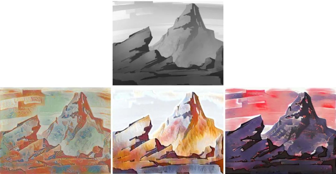 Style Transfer 在开发时专门考虑到了概念美术师,可以帮助他们以简单的缩略图或手机照片为基础生成不同的气氛与色调的图像,将一张参考图像的艺术风格转移到另一张图像上,为项目探索新的创作方向。