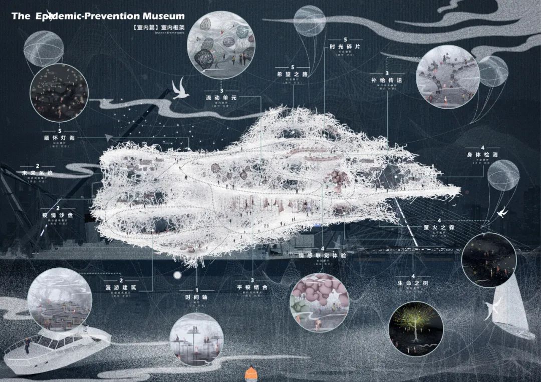 作品说明:我们把四个展览做成四个小岛。每个小岛有展览的特征和特性,也会展示展览中比较重要的文物或元素,观众可以在微信公众号或微博通过打卡的方式把小岛激活,这样就可以把展览保存到自己的手机中,使展览和观众产生关系,离开博物馆后还可以从公众号或微博链接中再次获取到与展览相关的知识。我们设计了四个展览主题小岛之后再设计一个主岛。主岛以广东省博物馆的建筑为原型,作为文创商店和展示。我们的文创也会根据对应展览的元素进行提取设计。