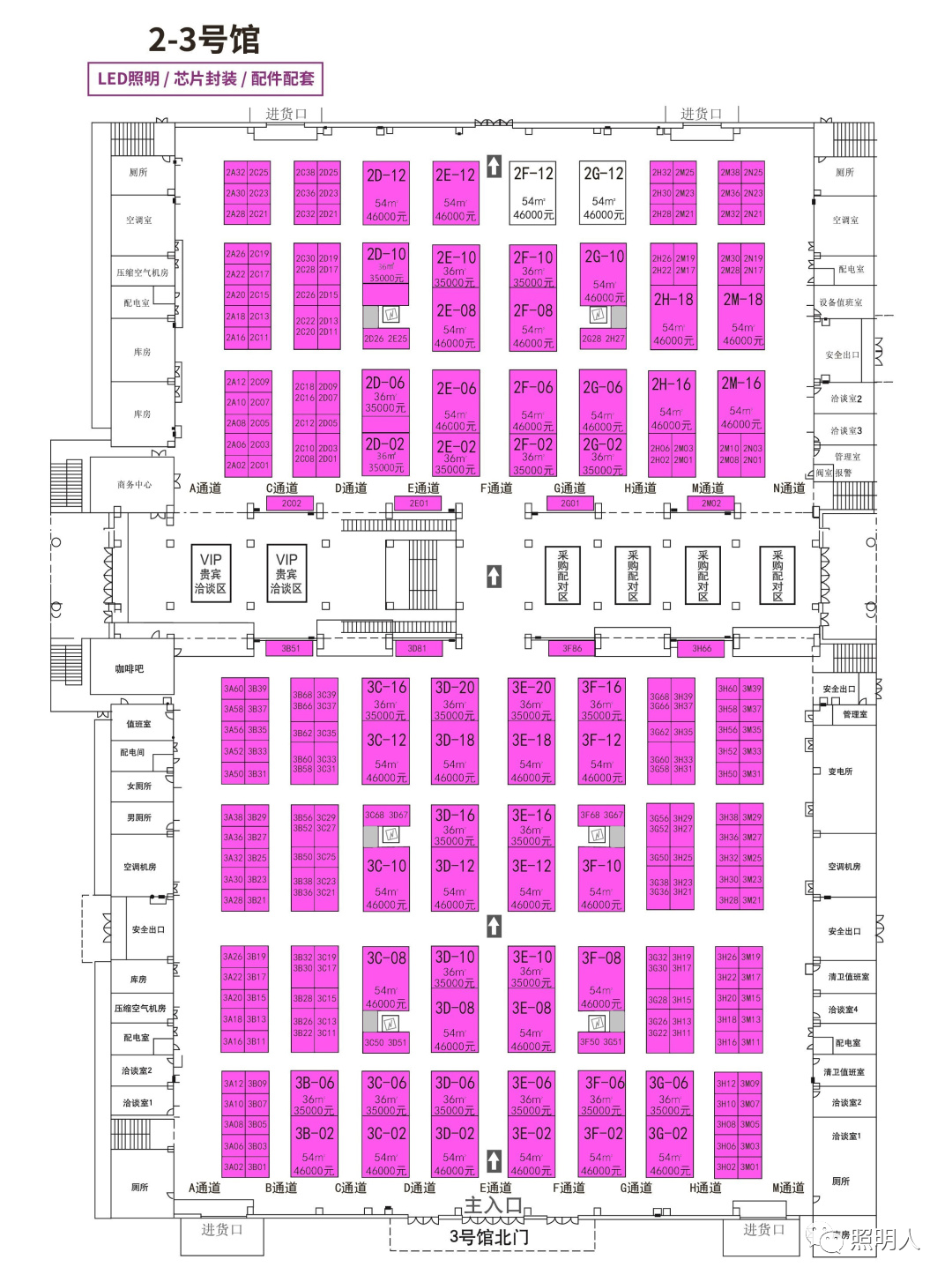 南门入口即为两个180㎡的超大展台