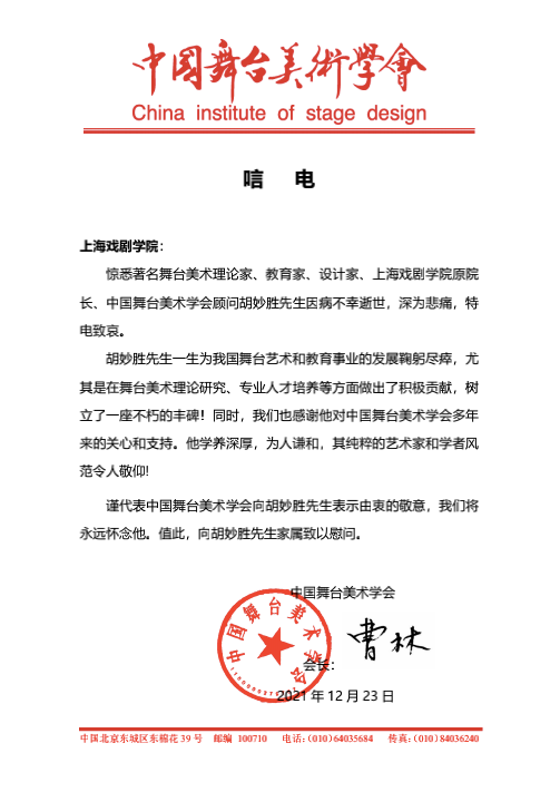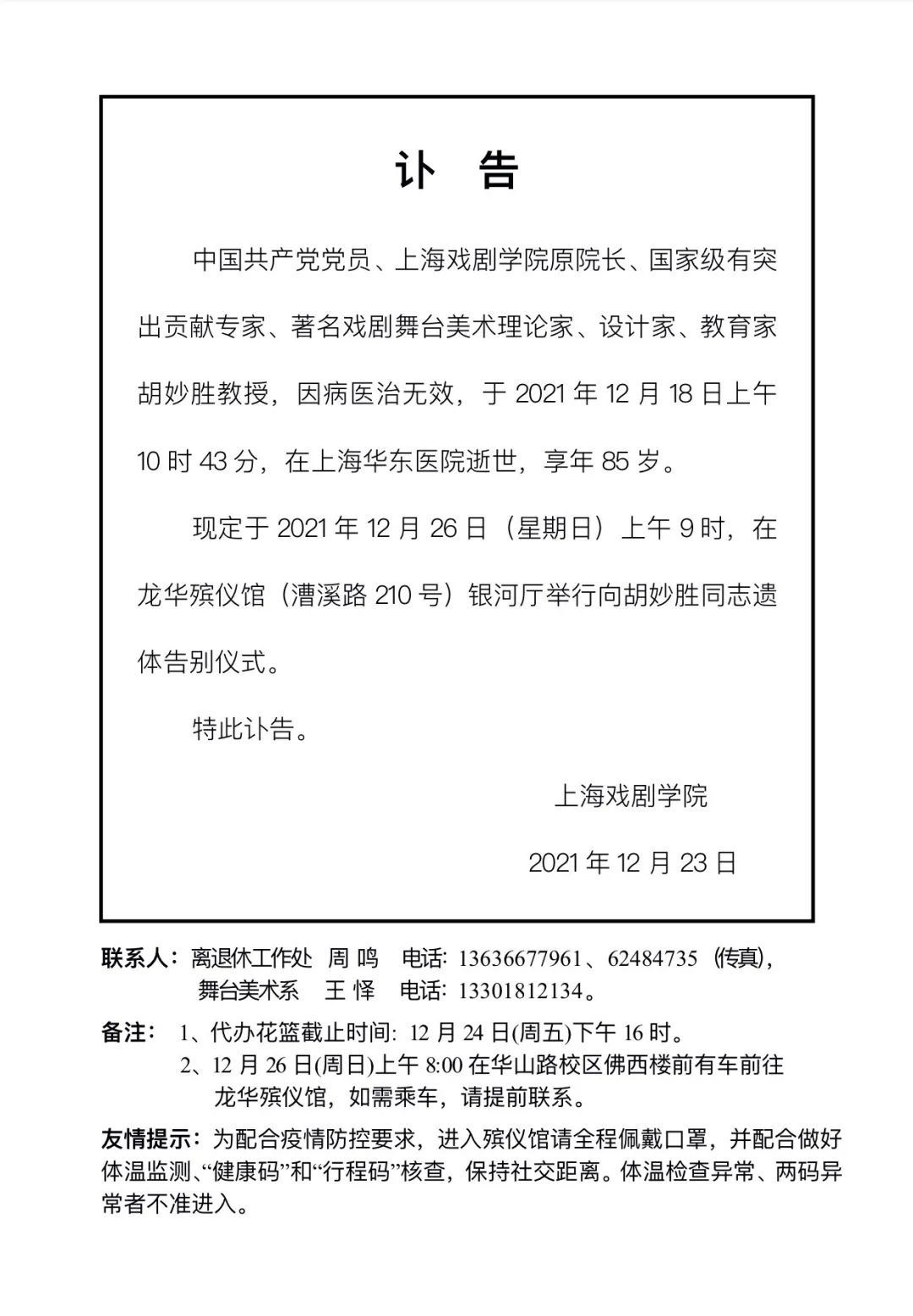- 告别胡妙胜先生——为我国舞美理论事业鞠躬尽瘁的一生