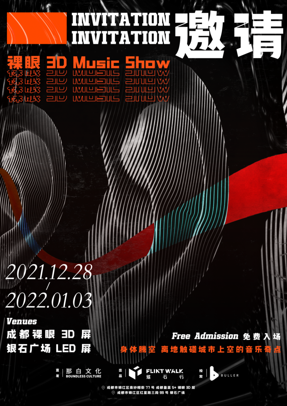 2022 即将来临,我们在成都裸眼3D大屏与三支风格迥异的乐队,联合引爆从未触达的领域。