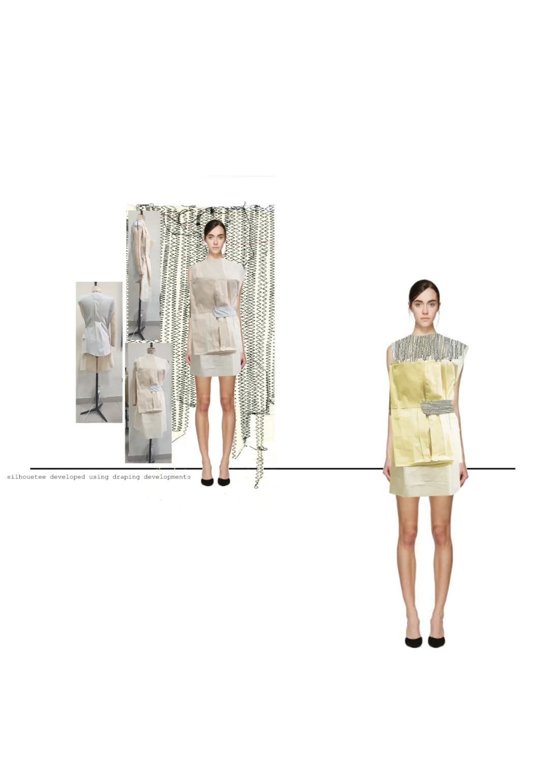 I achieved these designs following my designphilosophy of “Less is more” by using one element to extract silhouettes. Mywork was distinguished for its design developments and textiles. It showed thatsometimes a single element and simple textile can not only change the designoutlook but also make your designs stand among the most.