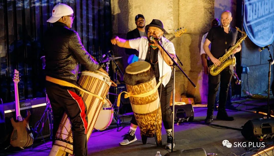 DUMBO 为音乐节提供了户外露天的机会。黑幕中,在拱门下人们尽情的狂欢,穿破天穹的音乐,变幻无穷的灯光以及高亢激昂的现场,点起了观众深夜的灵魂,Brown Rice Family,MICHAEL BLUME,WHITE WAVE DANCE COMPANY 等乐队相继现身于DUMBO。不仅如此,每到晚上,转角的酒吧经常会有意想不到的演奏者;曼哈顿桥洞下有音乐人的即兴表演;还有全纽约最意想不到的古典音乐演出室:BARGEMUSIC。