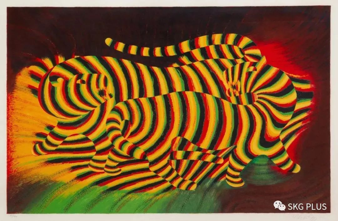 他极不赞成平面与立体之分,因为他认为:绘图和雕刻的分法,是极落伍的观念。正确地说,应该分为二度或三度、或多次的造型艺术。这从 1955 年,他出版的黄色宣言 Yellow Manifesto 一书里窥见出他的思想。ictor Vasarely 的画面像在方格子上配置了许多小圆形,或是像老虎或斑马纹样的抽象图型;因色彩和调子的奇妙组合,这些图形做螺旋状的运动。他的绘画,无论是黑白或彩色,都省去中间调子、利用几何图形,制成欧普艺术的错觉。