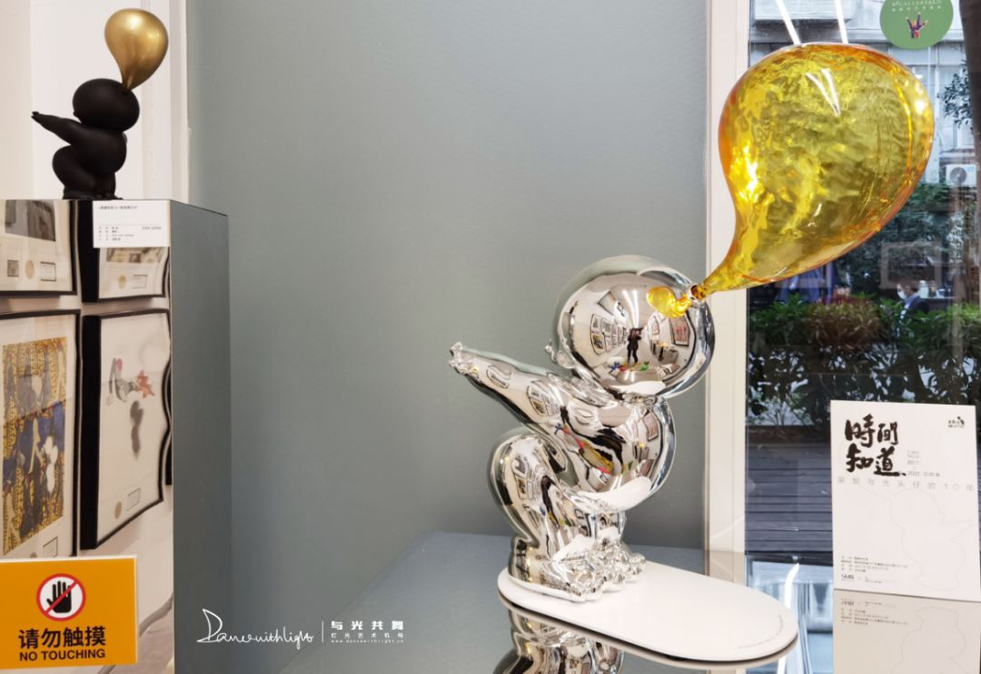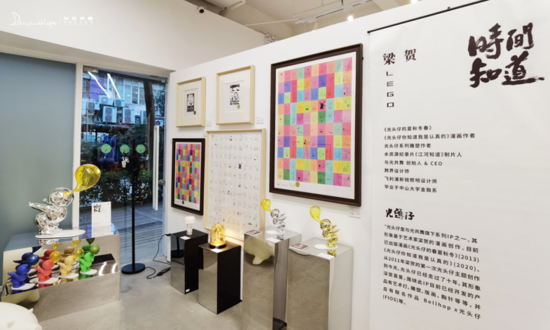 十一月,上海,中国最高的书店,光头仔和观众一起,将黄浦江畔的风景和天上的云朵收于眼底。月底,梁贺与光头仔的十年主题展“时间知道 time tells”第一站在朵云书院正式圆满落幕。