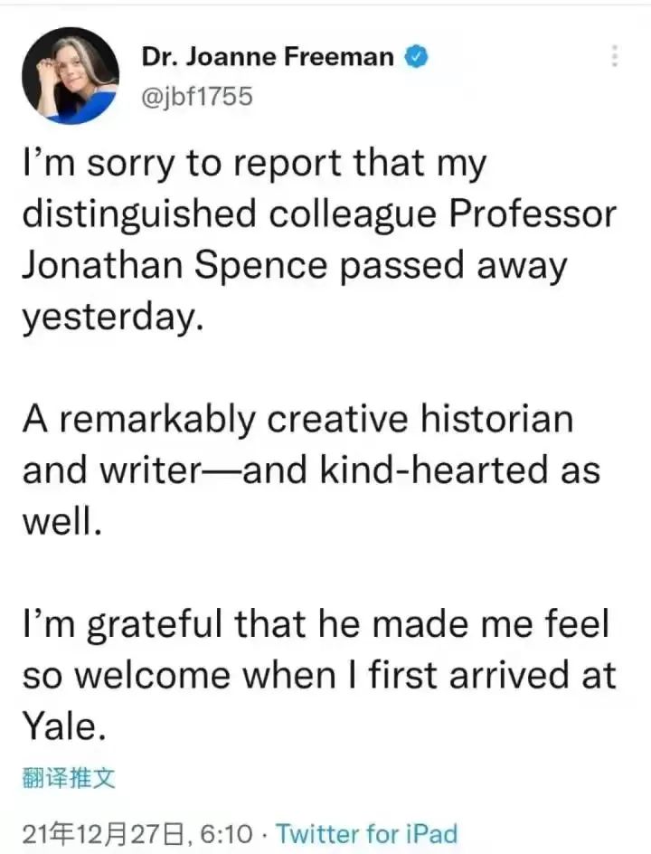 据悉,著名历史学家、耶鲁大学荣誉教授史景迁于当地时间2021年12月26日辞世,享年85岁。